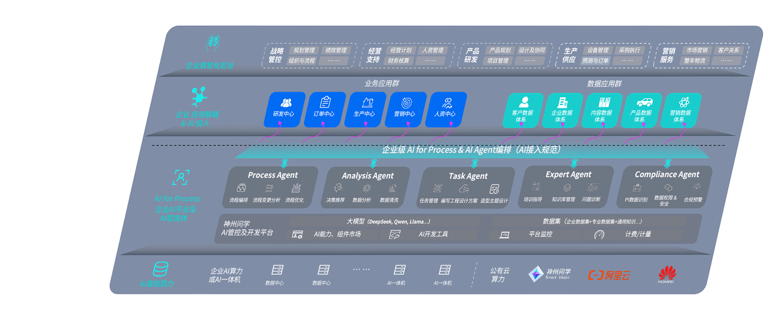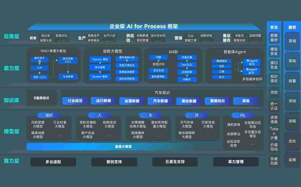 端到端的一站式AI工作空间深度融合了从企业战略规划到日常经营的全流程业务板块,,,定向解决车企内部领域多、、、、部门多、、链条长、、场景碎片化等难题,,,,支持车企快速构建以AI为核心的生产力写作体系,,,实现任务执行与AI能力的无缝集成与交互